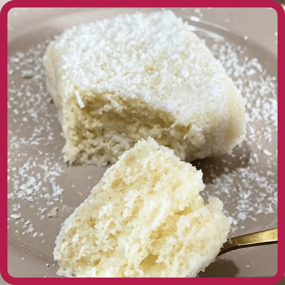 Bolo gelado de massa de Ninho com recheio e Ninho e passado no coco ralado.