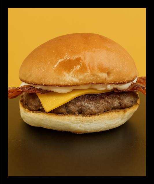 Suculento burger com queijo derretido e fatias crocantes de bacon, tudo entre um pão macio e finalizado com a nossa exclusiva maionese da casa. Um clássico irresistível!